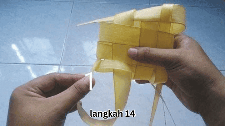 Berikut ialah langkah demi langkah cara menganyam ketupat menggunakan daun palas: